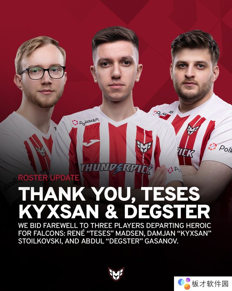 HEROIC战队在社交平台发文,与kyxsan、degster和TeSeS告别。