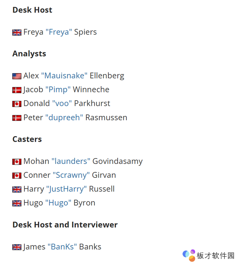 解说团队由大家熟悉的launders和Scrawny搭档,此外还有JustHarry和Hugo。
