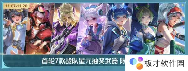 七款战队星元皮肤一起返场!从eStar的嗷呜小狼到花木兰的星元全部都会抽奖返场。战队星元皮肤的色彩都比较绚丽,用色大胆,给人眼前一亮的感觉。