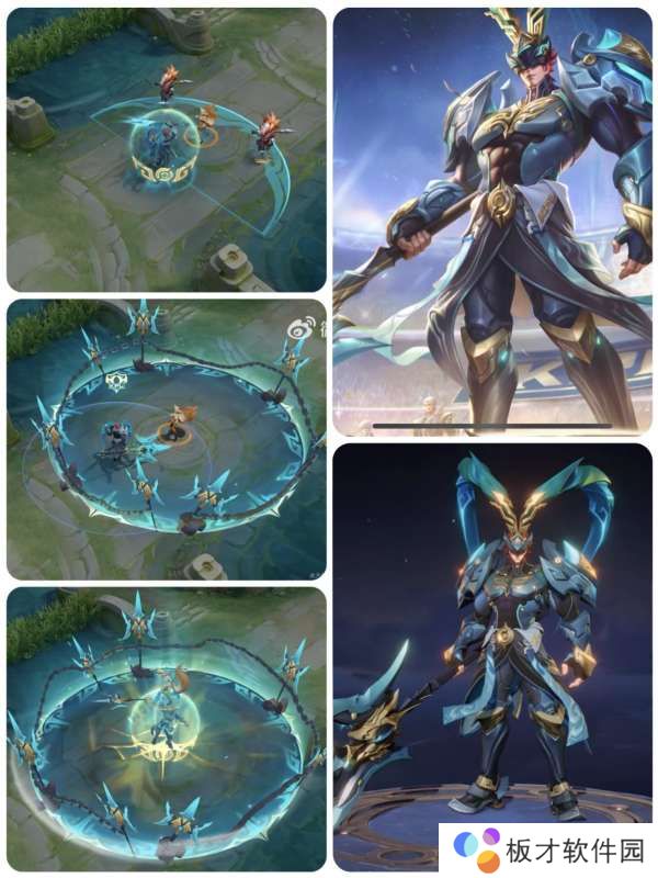 特效里充满了KPL的元素,这也是一款KPL秒杀皮肤哦!蓝绿配色是吕布之前别的皮肤没有的。