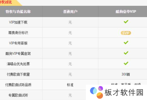开通酷狗音乐vip可以享受众多特权服务,例如vip加速下载,vip专享音乐下载,无损音质,vip身份标识,繁星特权和游戏礼包等。