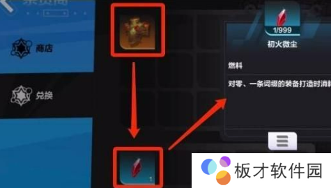 3、打开约娜商会,找到初火微尘,我们可以用初火灵砂来进行购买。