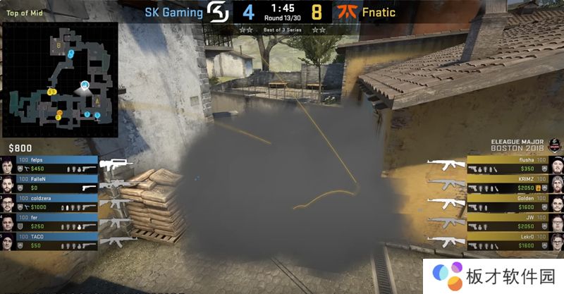 当然,针对T方在香蕉道的强势,CT也有应对之策,他们开发出了从警家扔出的闪光弹,可以在房顶上炸开,这颗闪光弹白不到黄车或者石板位的CT,但是能让进攻方睁不开眼睛。
