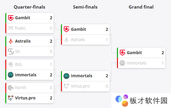 Immortals的总决赛中,Gambit先在Cobble以4-16丢掉一分,但在Train和Inferno以16-11和16-10逆转了形势。他们的胜利展示了Gambit出色的团队协调和战术指挥能力,让Gambit在逆风的情况下打出了经典的一战。