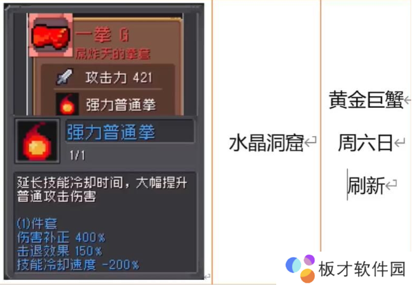 1、想要获得一拳G拳套的玩家需要前往水晶洞窟位置击败黄金巨蟹。