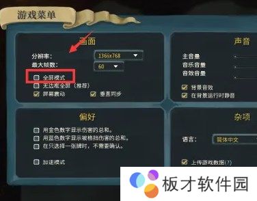 如图,在游戏菜单里面就可以设置游戏全屏。