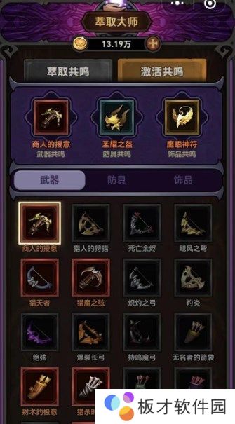 比如说武器可以选择商人的授意,这样就可以得到100%的连弩伤害,另外再加上鹰眼神符,得到90%的物理攻击加成,这样两个能够放在一起共鸣,就可以加强伤害能力。