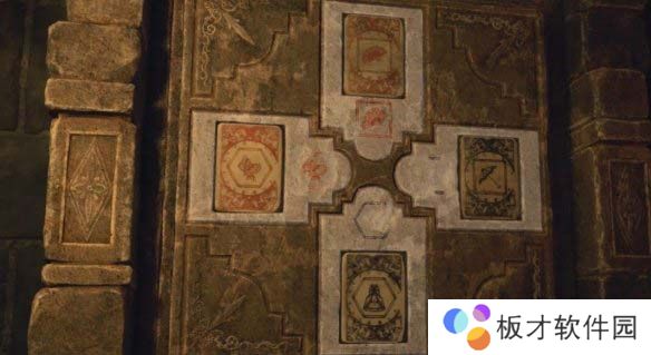 打开大门:在石板A所在位置有个挡路的柜子,需要先把柜子搬开才能过去。找到与正方形和六边形的图案相对应的石板拼图,按照正确的图案拼接,即可打开大门。