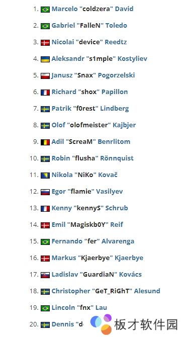 以下为2016年HLTV 年度最佳选手Top 20名单: