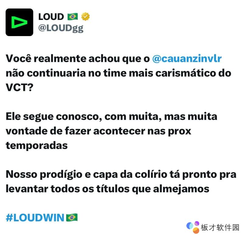 LOUD战队宣布Cauanzin将留队,继续征战2025赛季。战队表示他将带着强烈的意志迎接未来的挑战,目标是为团队争夺更多冠军头衔。原文如下: