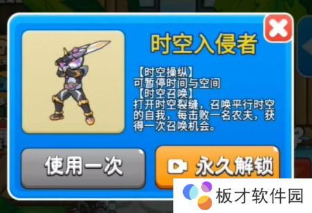 【时空召唤】:打开时空裂缝,召唤平行时空的自我,每击败一次农夫就会获得一次召唤机会。