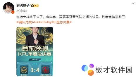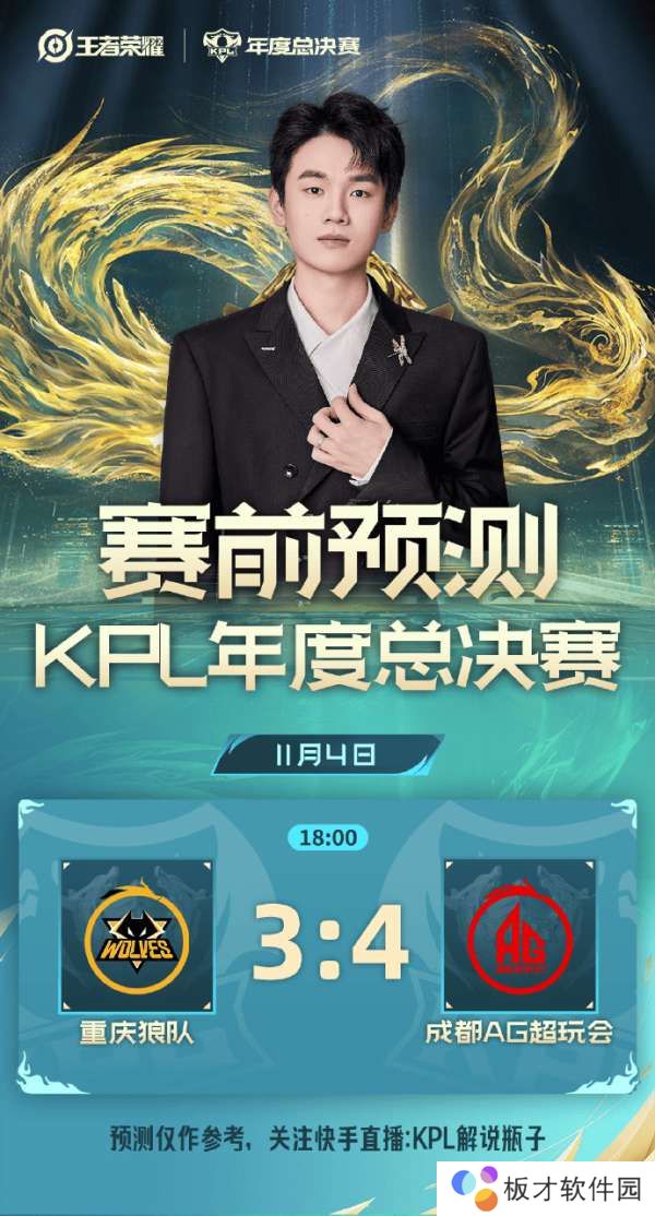 虎扑11月04日讯 今年春夏赛季冠军之战,瓶子预测今日赛果:AG 4-3 狼队!