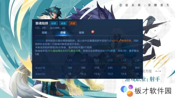 还是熟悉的扔出一个陷阱,不过敌人出发以后会召唤一只狼魂对其进行攻击,狼魂会继承我们本体的一部分属性,攻击会有减速效果,不过实测效果一般,减速比例太低持续时间太短,远没有红buff好用,而且跟米莱狄的机械人一样人多了很容易刚出现就被秒。
