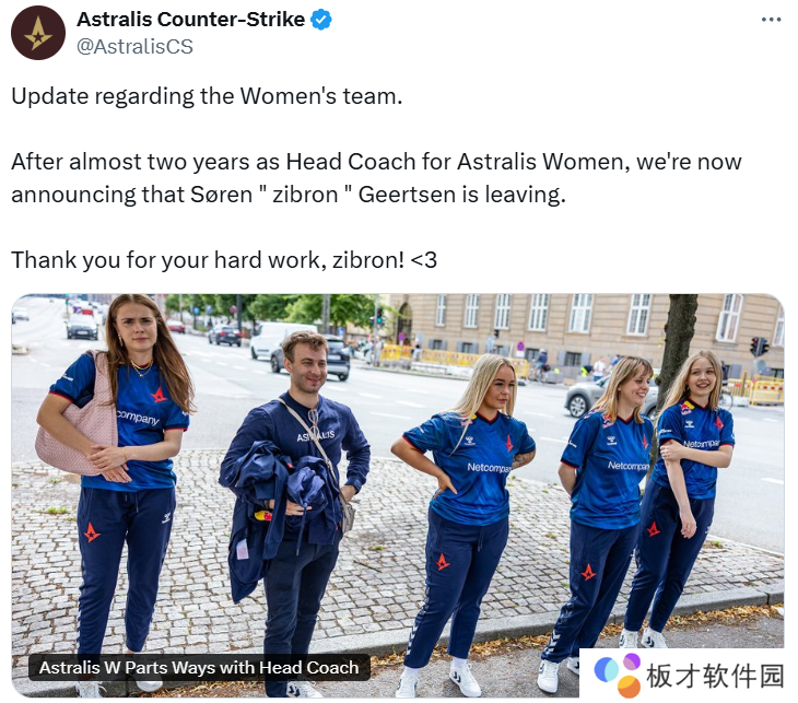 Astralis W主教练近两年之后,现官宣与Astralis女队分道扬镳。