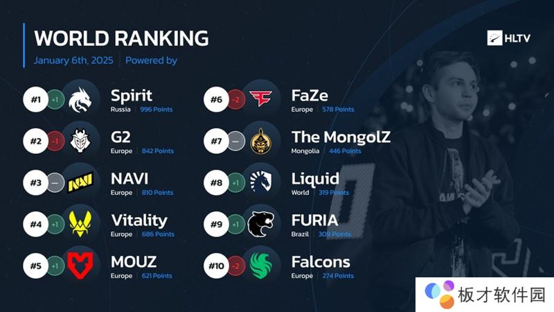 今天HLTV公布了2025年第一期世界排名,这则排名将会和年底的排名相互印证,见证一年来战队的起伏变化。