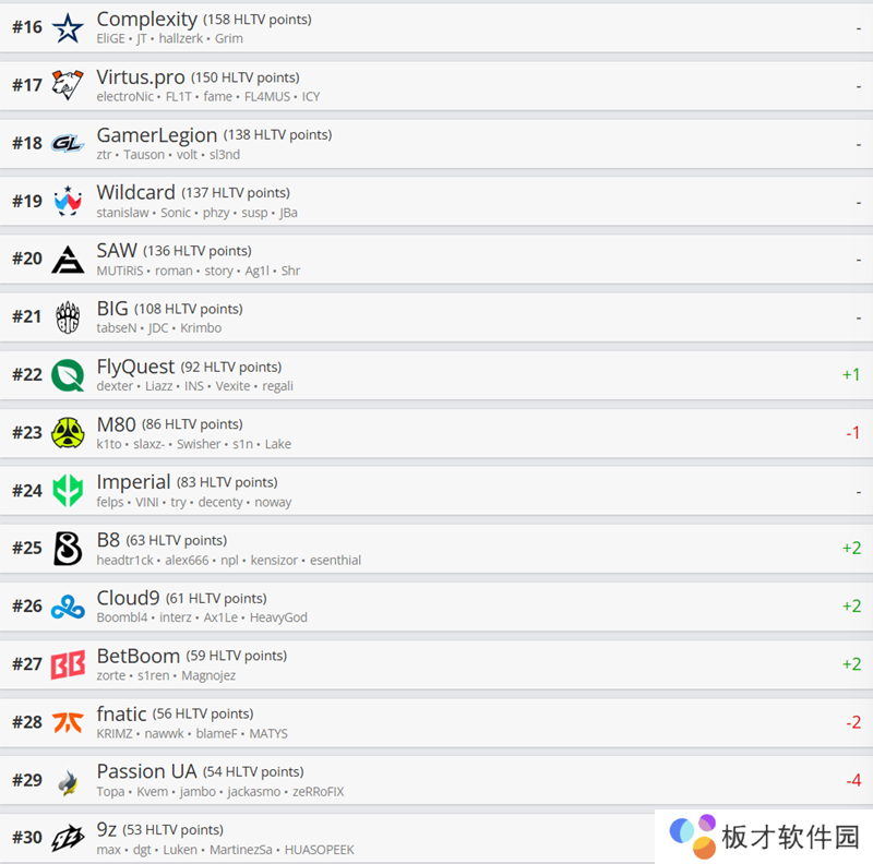 Passion UA排名下滑四位,当前的Top30战队守门员是