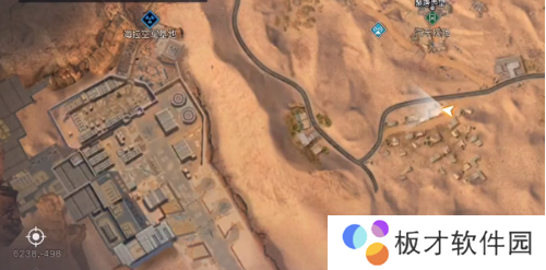 1、我们直接来到地图坐标【6238,-498】位置,然后可以看到金色沙漠欢迎你的广告牌。