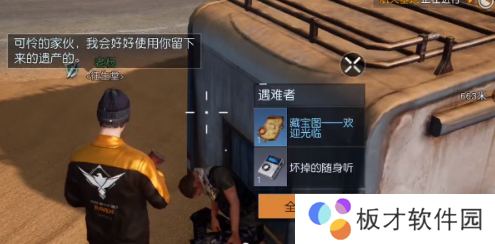 3、靠近遇难者以后,点击搜取就能获得【藏宝图——欢迎光临】。