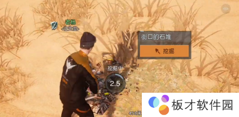 2、在路标找到下图位置的土堆,点击进行挖掘。