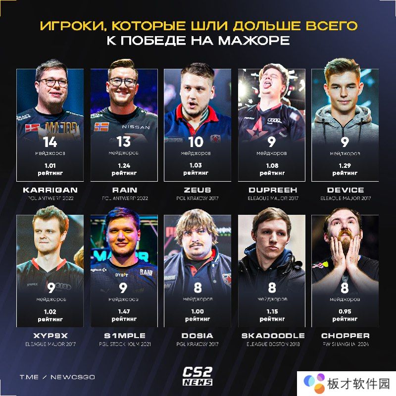 近日,俄罗斯媒体统计了那些在Major赛事中征战时间最久,耗时最长才捧起冠军奖杯,以及那些还未能获得冠军的选手们,一起来看看这两份榜单中都有哪些选手吧。