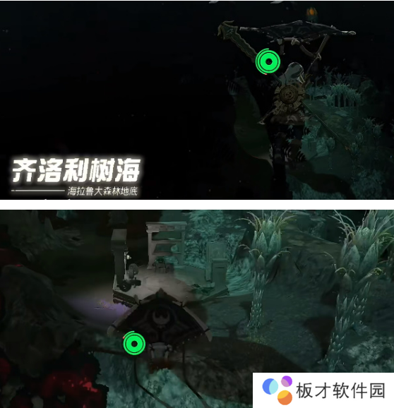 2、来到底部进入齐洛利树海区域,我们朝着下图的方向移动。