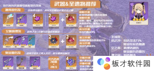 天空之翼对于菲谢尔来说是所有流派的最佳选择,自带双暴,不管是物理还是奥兹雷伤或者混伤,都得靠双暴加持才能有高额的伤害。苍翠带的暴击率主要能减少圣遗物的属性压力。双暴才是永远的输出源泉。