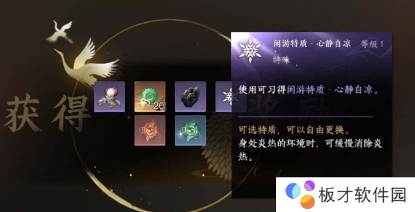 2、如果穿送过来没有看到BOSS的话可以去踩一下地上的机关,将其击败后可以获得【闲游特质·心静自凉】,在玩家所处炎热环境的时候可以消除炎热状态的影响。