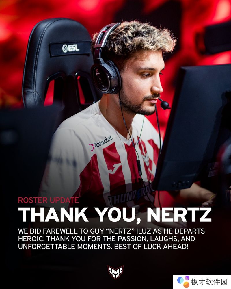 “感谢你,NertZ。我们向NertZ告别,他离开了HEROIC。谢谢你的激情,欢笑和与你度过的难忘时光,祝你好运!”