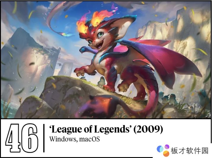 而《英雄联盟》也作为MOBA类的代表游戏,入选该榜单的第46位。
