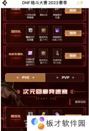 ②如果找不到搜索DNF格斗大赛也可以,进入活动界面之后往下拉,玩家可以看到有很多的奖励可以领取;
