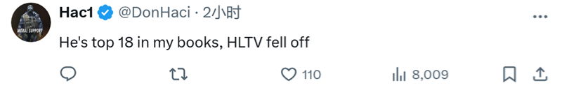 HAC1:在我看来他是Top18,HLTV排名低了。
