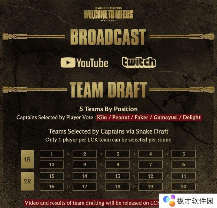 队伍选人视频与结果后续将会发布在LCK媒体账号