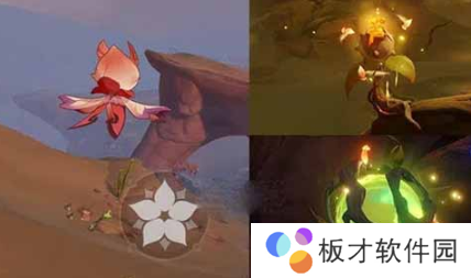5.此外,斯露莎也可以长按打开一些花苞从而生成平台,在一些光团的旁边点按技能也可以生成道路。在花圃处飞行可以使花苞绽放等。