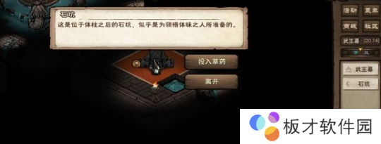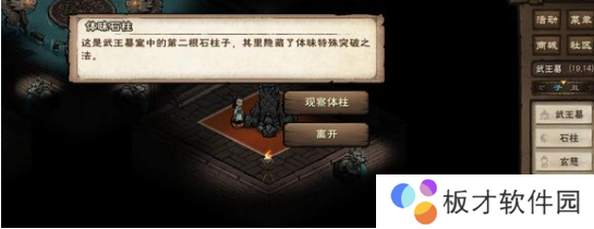 5.在【帝陵外】的传送阵(8,6)选择「前往武王墓」。在【武王墓】的(19,14)点击「石柱」选择「观察体柱」。