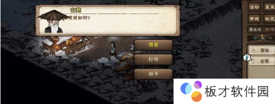 6.在(20,14)点击石坑,选择「投入草药」→「跳入浸泡」→「沉入石坑」,剧情后对话玄慈(19,14)。