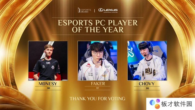 该奖项由The Esports Awards颁发。在“年度PC游戏选手”类别中,Faker当选为最终赢家,m0NESY位居第二。同样来自英雄联盟项目的郑志勋(游戏ID:Chovy)排名第三 。