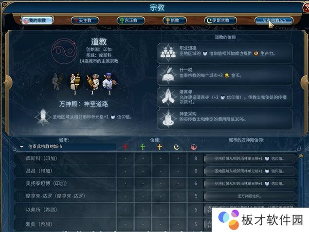 比起上代,文明六的宗教不易抢到,只有六个就满额,所以一开始不抢的话,很容易就会失去先机