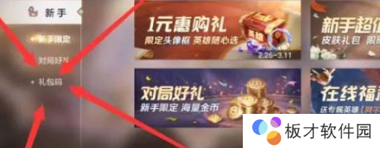 2、进入之后在左侧的位置可以看到有【礼包码】,玩家点击进入;