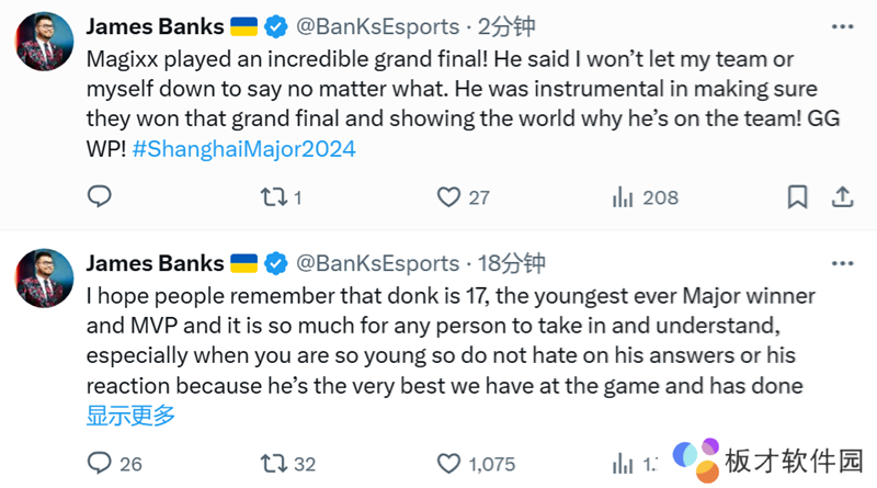 BanKs:我希望人们记住,donk只有17岁,是有史以来最年轻的Major冠军和MVP,这对任何人来说都是很难接受和理解的,尤其是当你还这么年轻的时候,所以不要讨厌他的回答或反应,因为他是我们比赛中最优秀的选手,他在新秀赛季就做到了别人从未做到过的事情!!