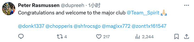 Peter Rasmussen | dupreeh:祝贺,欢迎你们加入Major俱乐部,Spirit。