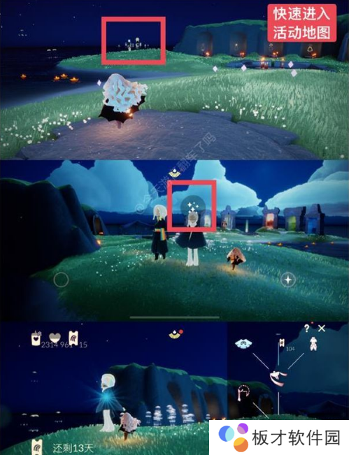 3.除任务泡泡,其余均在活动地图内,可从遇境彩虹节先祖处传送过去。先祖反应有点慢,在先祖附近站一会就会有点开传送的图标了。