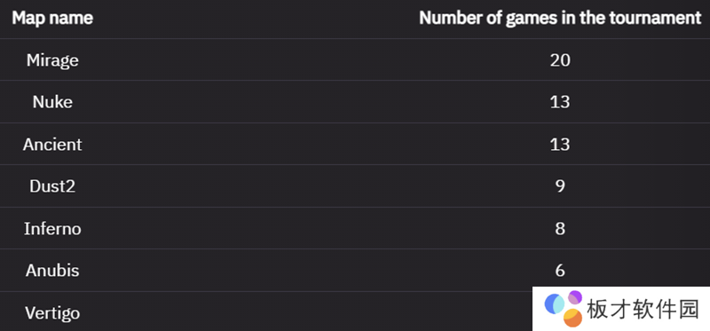 Spirit夺冠而落下帷幕,赛后本次Major淘汰赛阶段的地图数据也新鲜出炉。