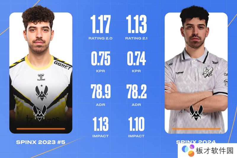 作为2023年的HLTV TOP5选手,对比去年,Spinx在数据上并无太多退步,基本维持了他在去年的同等水平。对于Vitality来说,要用新援来取代一位对本队战术体系已经相当熟悉的选手,这无疑是一场豪赌,而ropz,就是Vitality推到台前的赌注。