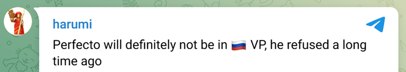 而独联体爆料人harumi在社交频道中透露:Perfecto肯定不会加入VP。他在很久之前就选择了拒绝。