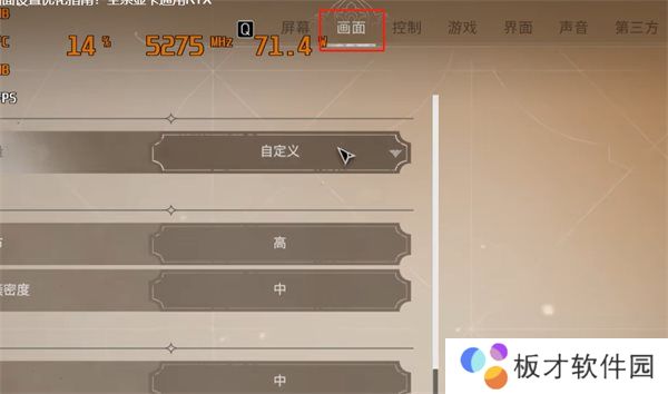 2、接着选择第二项画面,就可以进行想要的设置了,这里要根据自己电脑配置来看,显卡低的话少开一些。