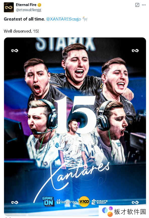 Eternal Fire官推:GOAT XANTARES。实至名归的TOP15!