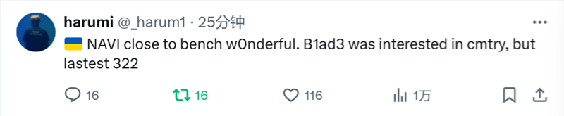 “NAVI下放w0nderful,箭在弦上。B1ad3有意cmtry,但后者牵涉到了最新的假赛风波当中。”