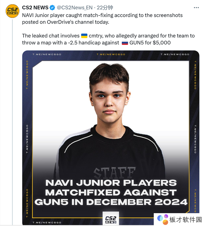 NAVI Junior的一名选手被发现有操纵比赛的行为。
