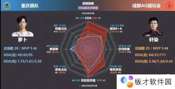 AG狼队选手对位数据雷达图,大家决赛更看好谁?