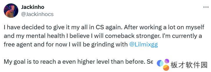 “我决定再次全力以赴地投入CS。在经过大量自我提升和关注心理健康后,我相信我会以更强的姿态回归。目前我是一名自由选手,现在会与